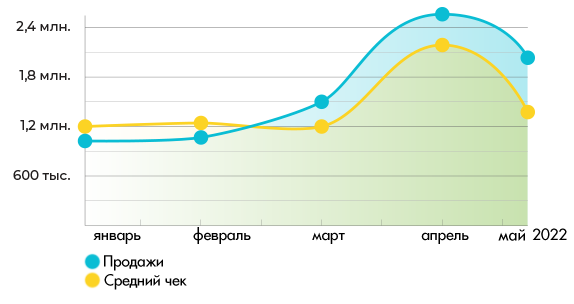 В период пандемии, когда часть бизнеса была вынуждена закрыться и тепрпела серьезные финансовые потери, наши магазины показывали рекордные показатели прибыльности. На графике продемонстрированы результаты одной из наших точек (среднестатистическая по показателям) в самый пик коронавирусных ограничений и запретов.